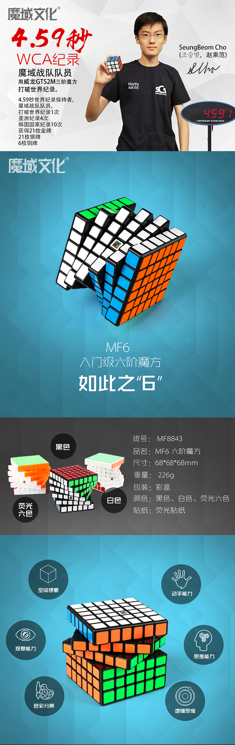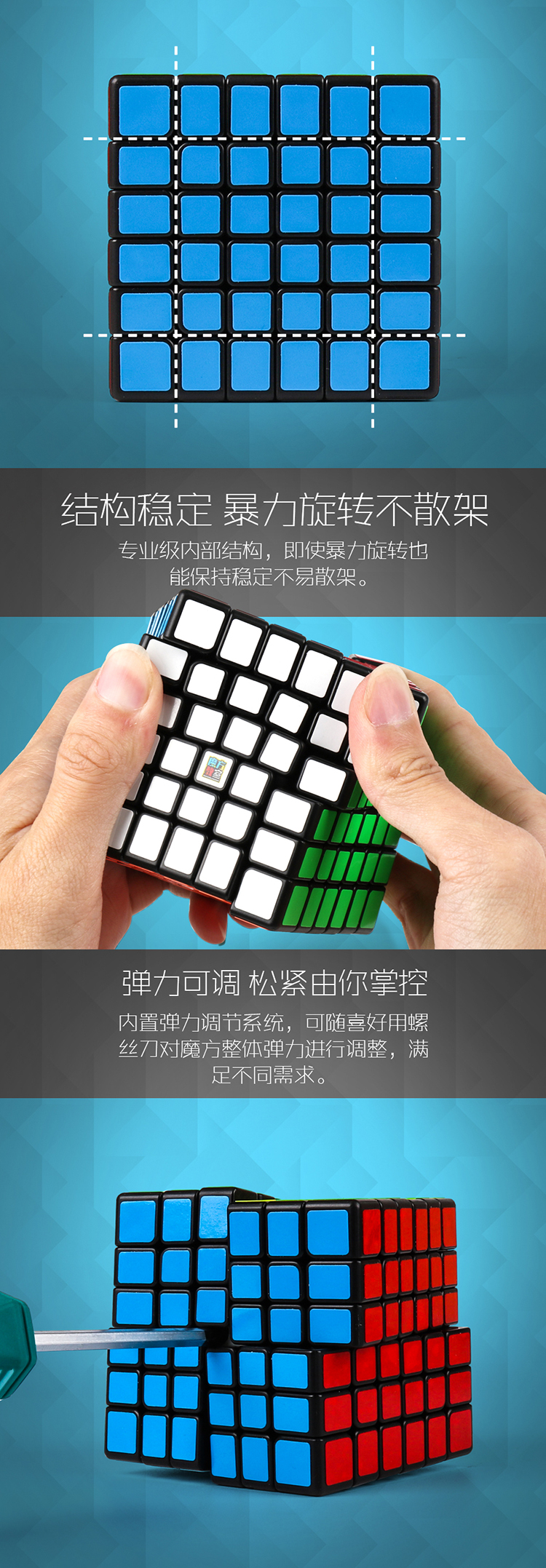 如此之“6” 更宽的外层 方便抓握不易脱手 MF6魔方对外层部分进行加宽处理,还原时更加顺手易操作,不会轻易脱手。