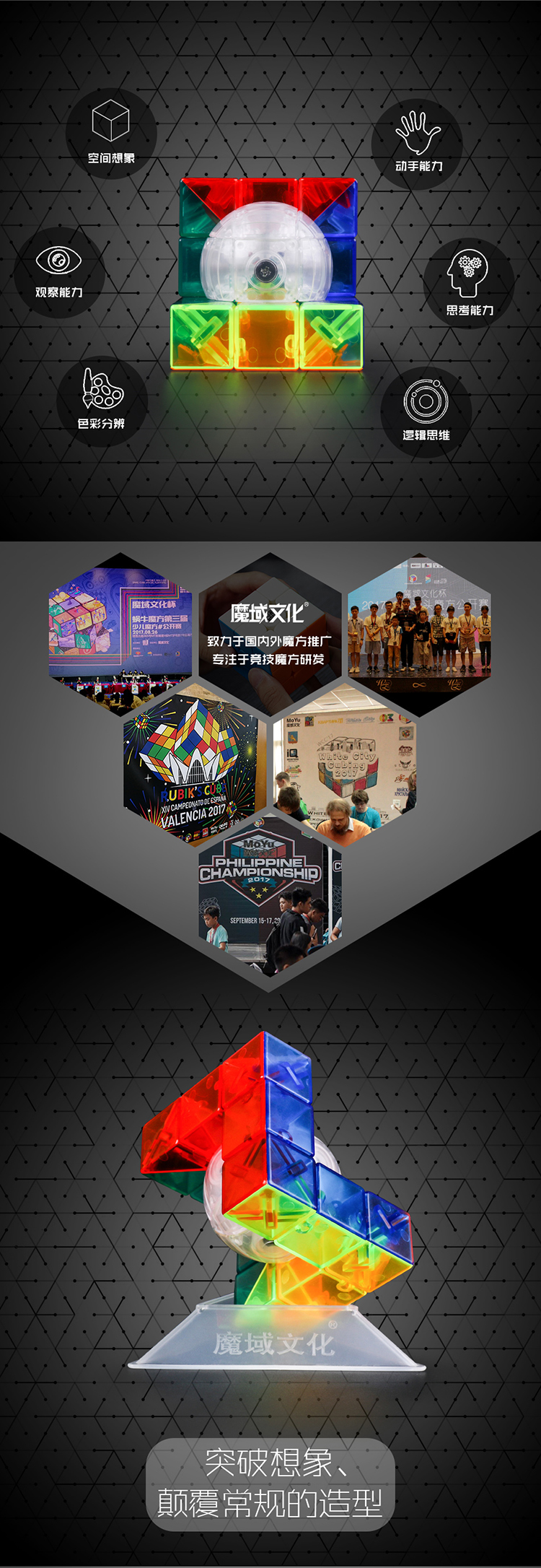 魔域文化尝试将几何元素融入到魔方的造型中,球体与立方体的结合造就让人眼前一亮的独特的外观!