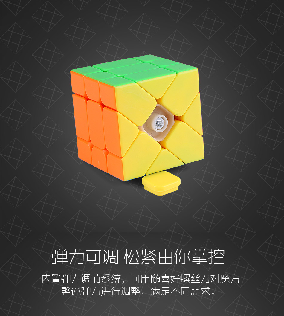 内置弹力调节系统,可用随喜好螺丝刀对魔方整体弹力进行调整,满足不同需求。