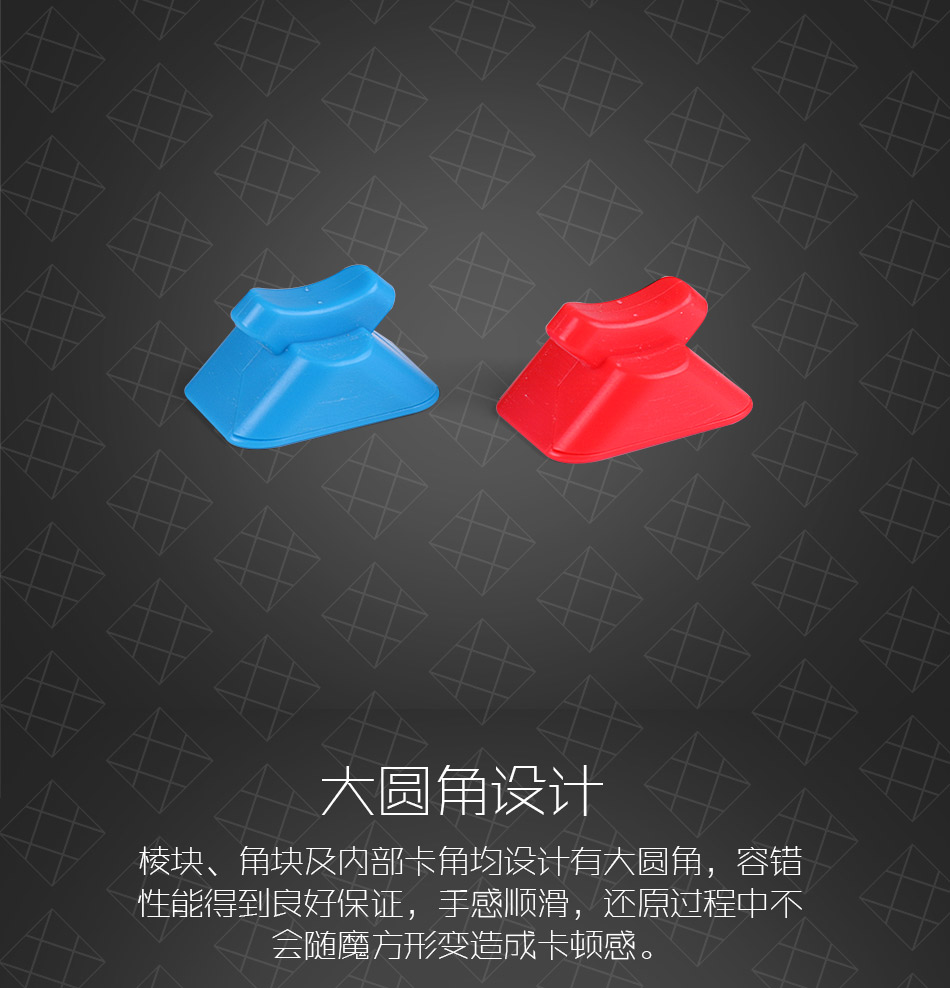 各棱、角块及内部卡角均设计有大圆角,容错性能得到良好保证,手感顺滑,还原过程中不会随魔方形变造成卡顿感。