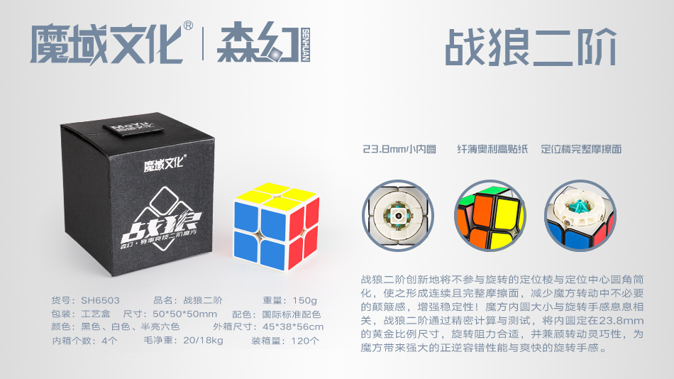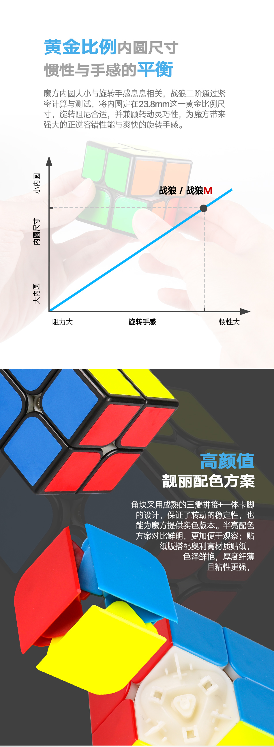魔方内圆大小与旋转手感息息相关,战狼二阶通过精密计算与测试,将内圆定在了23.8mm的黄金尺寸,旋转阻力合适,并兼顾转动灵巧性,为魔方带来强大的正逆容错性能与爽快的旋转手感。 .