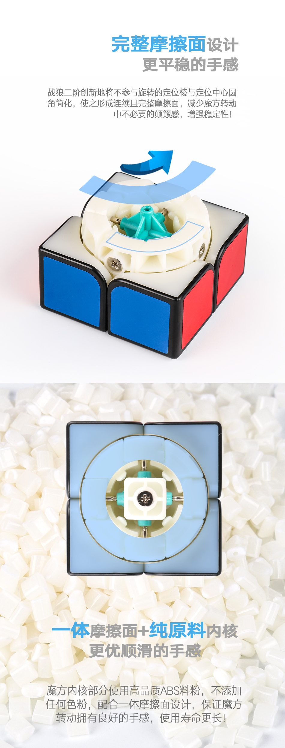 战狼二阶创新地将不参与旋转的定位棱与定位中心圆角简化,使之形成连续且完整摩擦面,减少魔方转动中不必要的颠簸感,增强稳定性!