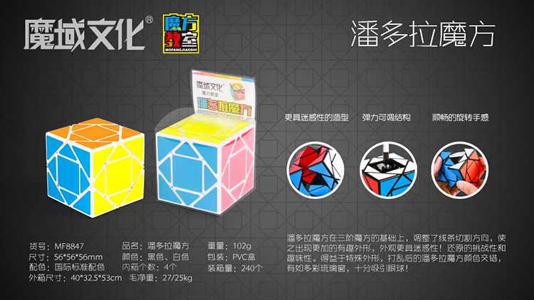 得益于特殊外形,打乱后的潘多拉魔方颜色交错,有如多彩琉璃窗,十分吸引眼 球!!