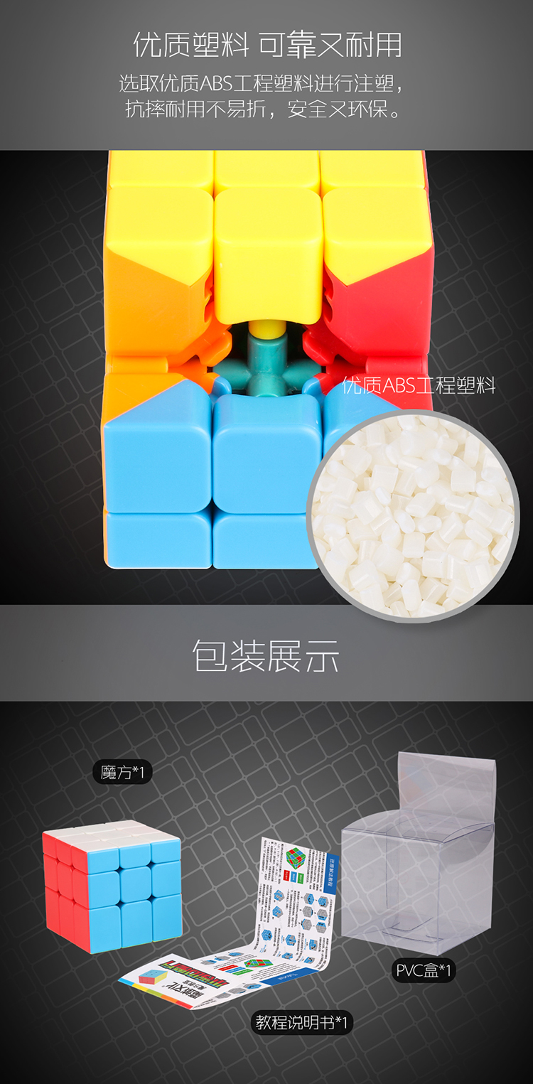 魔方采用六色拼接结构,为魔方提供了实色版本。并且使用荧光六色配色方案,精细挑选的六种色彩使魔方的颜色鲜艳、靓丽、更好观察,更加专业!