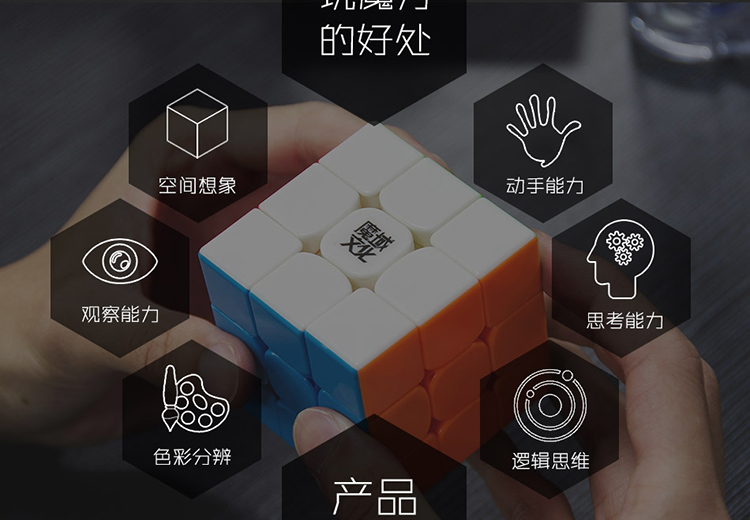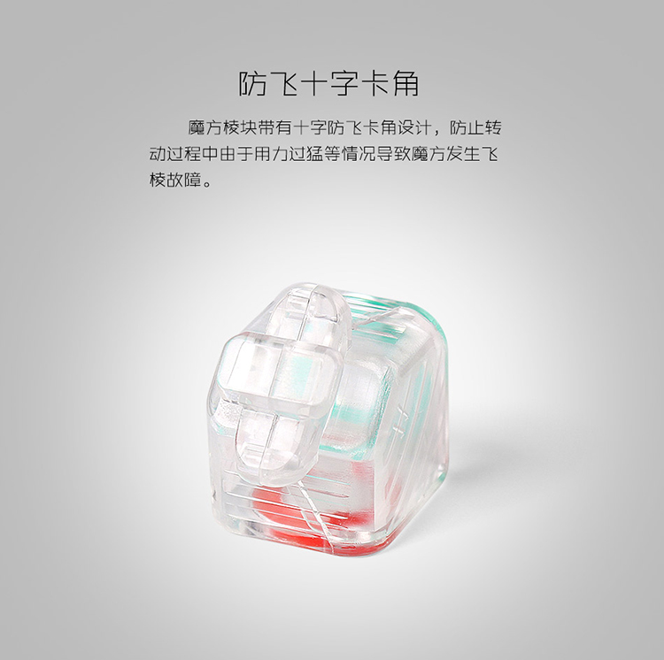 防飞十字卡角 魔方棱块带有十字防飞卡角设计,防止转动过程中由于用力过猛等情况导致魔方发生飞棱故障。