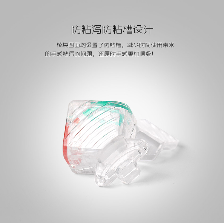 棱块四面均设置了防粘槽,减少时间使用带来的手感粘泻的问题,还原时手感更加顺滑!