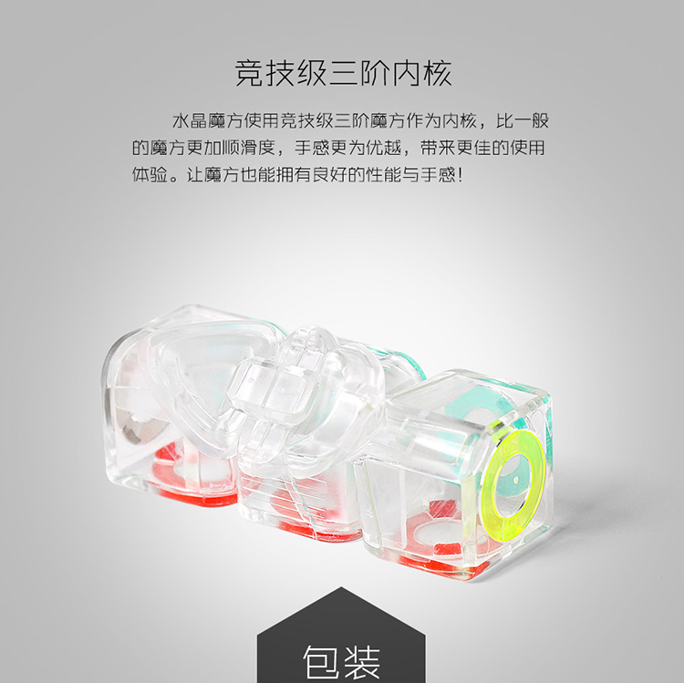 水晶魔方使用竞技级三阶魔方作为内核,比一般的魔方更加顺滑度,手感更为优越,带来更佳的使用体验。让魔方也能拥有良好的性能与手感!