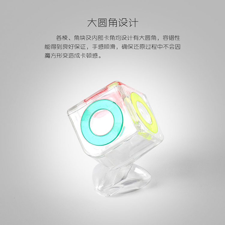 大圆角设计 各棱、角块及内部卡角均设计有大圆角,容错性能得到良好保证,手感顺滑,确保还原过程中不会因魔方形变造成卡顿感。 |