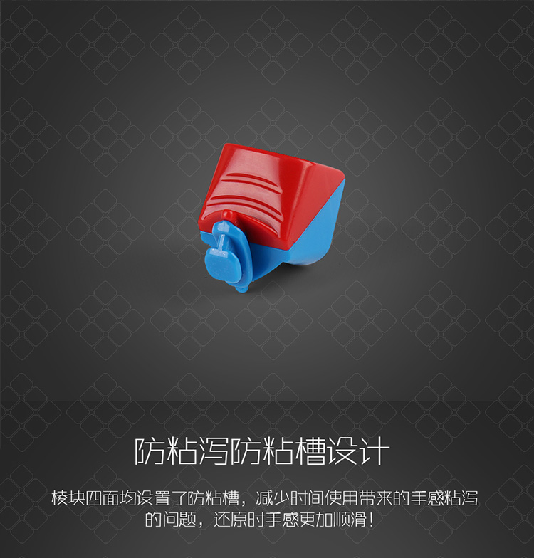 棱块四面均设置了防粘槽,减少时间使用带来的手感粘泻的问题,还原时手感更加顺滑!