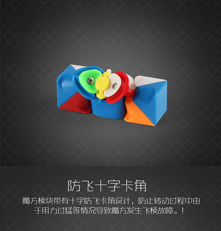 魔方棱块带有十字防飞卡角设计,防止转动过程中由于用力过猛等情况导致魔方发生飞棱故障!