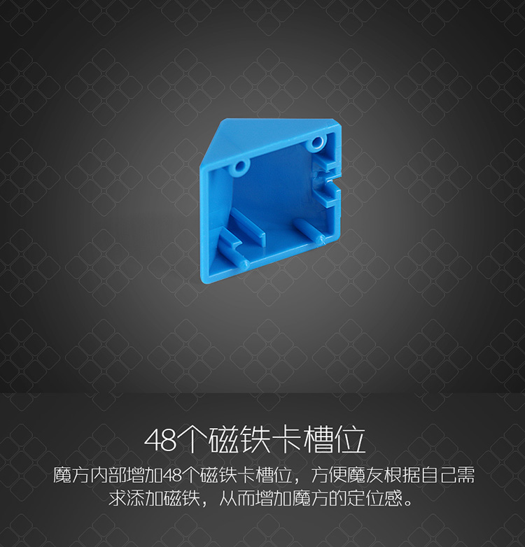 魔方内部增加48个磁铁卡槽位,方便魔友根据自己需求添加磁铁,从而增加魔方的定位感。